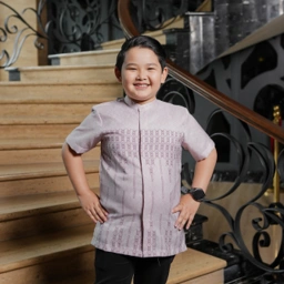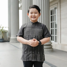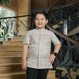 Kemeja koko modern untuk anak laki-laki dengan motif etnik yang elegan yang netral